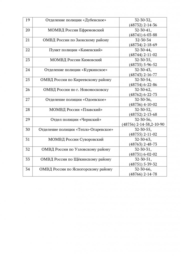 Управлением МВД России по Тульской области для организации данной работы обеспечена работа круглосуточного «телефонного доверия» 32-22-49.